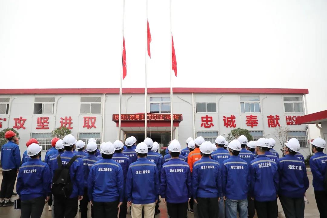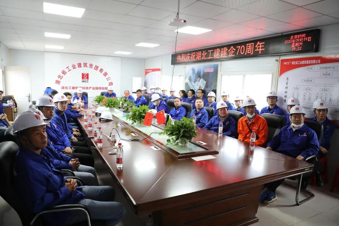 2020年9月19日,為慶祝湖北省工業(yè)建筑集團(tuán)有限公司建企70周年,湖北工建安裝公司在湖北工建機(jī)電科技產(chǎn)業(yè)園項(xiàng)目隆重舉行升旗儀式。9時(shí)19分,在雄壯有力的義勇軍進(jìn)行曲的伴奏下,現(xiàn)場(chǎng)全體干部職工注目鮮紅的五星紅旗和湖北工建司旗緩緩升起,齊聲高唱國歌,滿懷豪情地迎接湖北工建集團(tuán)70周歲生日。
