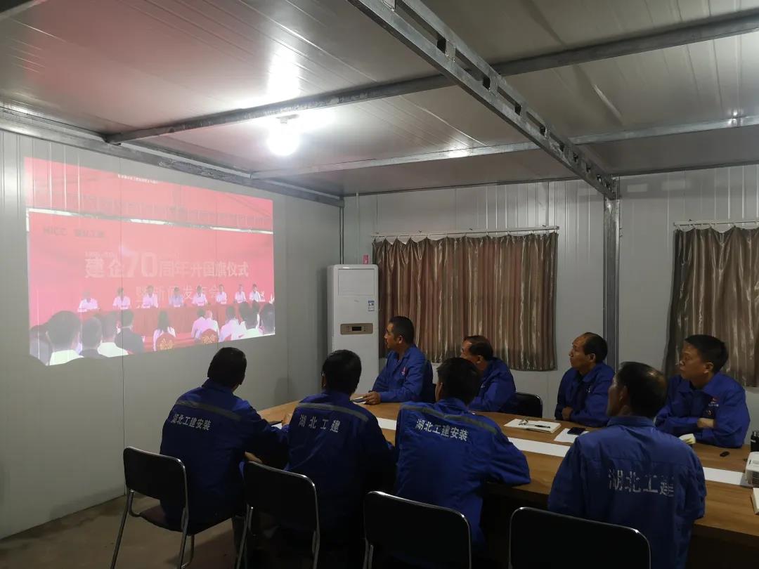 升旗儀式后,公司干部職工集中收聽收看集團(tuán)公司慶祝建企70周年新聞發(fā)布會(huì)視頻直播。