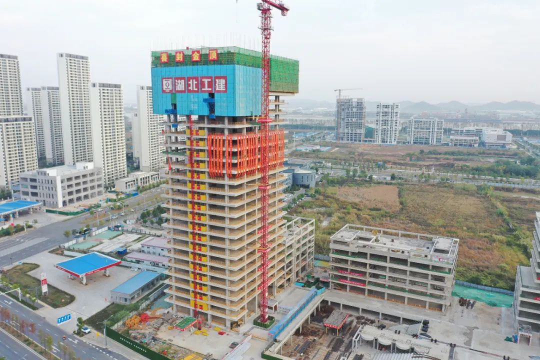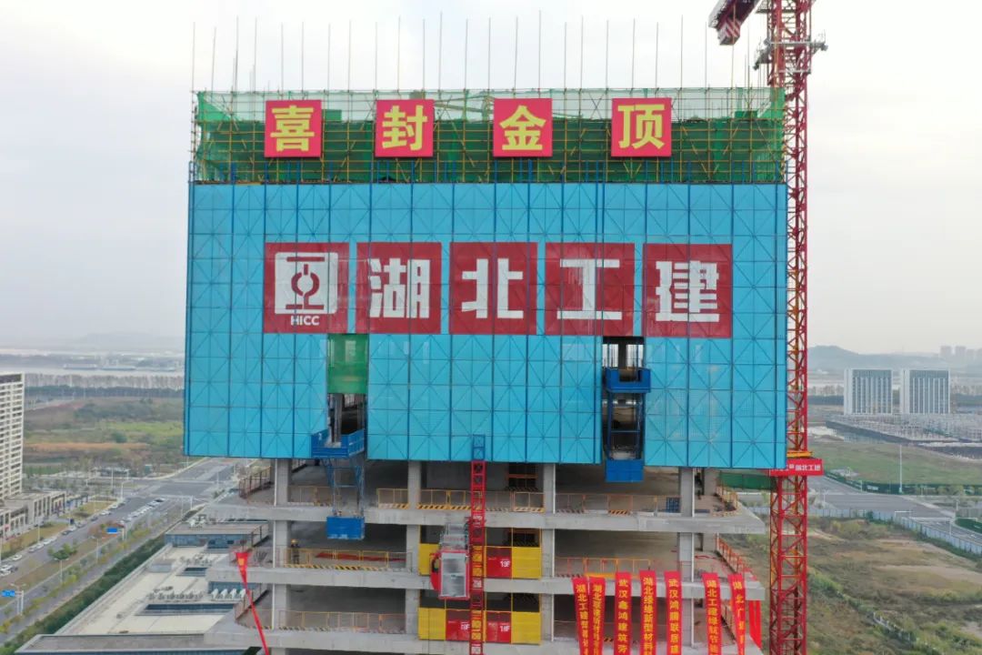 喜封金頂!湖北工建機電科技產業園項目1#樓封頂儀式圓滿成功